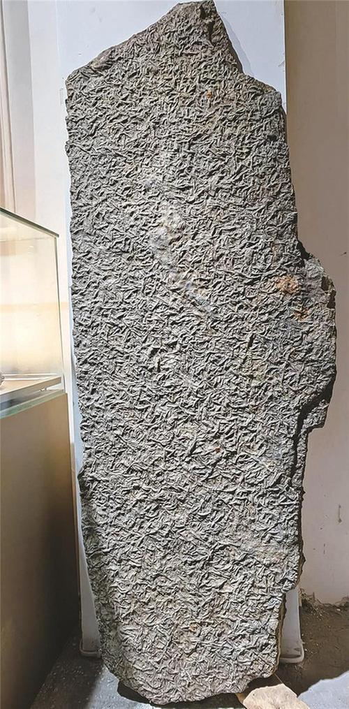 啄石燕群板化石。