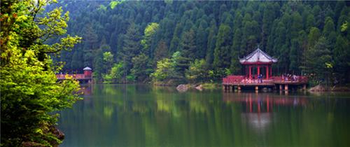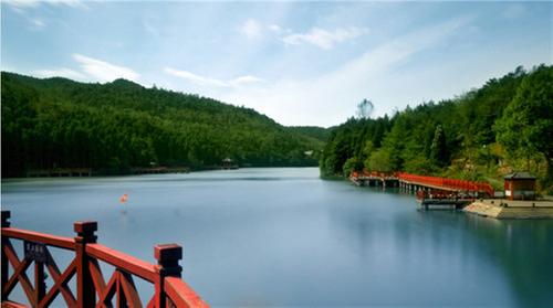 日月湖水面6.7公頃。泱泱湖水,靜如處子。旭日東升,萬點(diǎn)金鱗,水霧氤氳;夕陽西下,彩霞滿天,波光瀲滟;山風(fēng)乍起,松濤涌動(dòng),漣漪陣陣;泛舟湖上,悠然搖曳,飄逸超然。