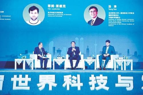 高端對話環(huán)節(jié)圍繞“面向聯(lián)合國可持續(xù)發(fā)展目標(biāo)的基礎(chǔ)研究”議題展開,由電子科技大學(xué)校長、國際歐亞科學(xué)院院士、成都市科協(xié)主席曾勇主持。巴西坎皮納斯州立大學(xué)名譽(yù)教授、愛思唯爾研究網(wǎng)絡(luò)高級副總裁Carlos Henrique de Brito Cruz,北京師范大學(xué)-香港浸會大學(xué)聯(lián)合國際學(xué)院校長、中國科學(xué)院院士湯濤,澳大利亞科廷射電天文學(xué)研究所所長、國際射電天文學(xué)研究中心主任Steven Tingay,國際地理聯(lián)合會副主席、中國科學(xué)院院士傅伯杰,浙江大學(xué)教授、中國科學(xué)院院士、發(fā)展中國家科學(xué)院院士、美國工程院外籍院士楊衛(wèi),中國化學(xué)會副理事長、國際純粹與應(yīng)用化學(xué)聯(lián)合會執(zhí)委帥志剛,電子科技大學(xué)研究員Tim Leydecker聚焦數(shù)學(xué)、物理、天文、地理等基礎(chǔ)研究領(lǐng)域,進(jìn)行思想交流和觀點(diǎn)碰撞,共同助推基礎(chǔ)研究國際合作。