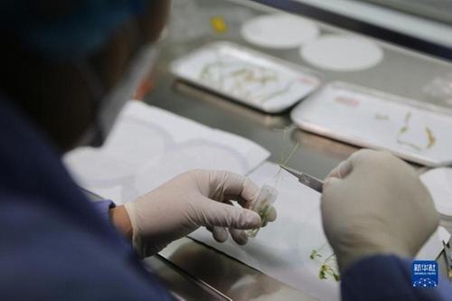12月5日,在中科院空間應(yīng)用中心生物實(shí)驗(yàn)室,中科院分子植物科學(xué)卓越創(chuàng)新中心鄭慧瓊研究員處理從太空歸來(lái)的擬南芥樣品。新華社發(fā)