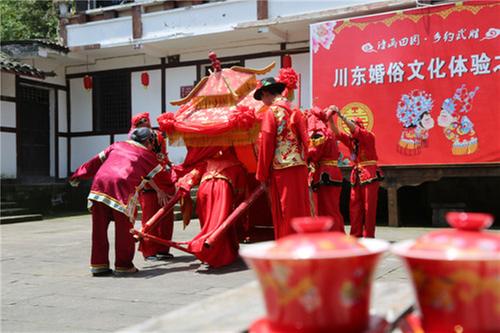 高家院子禮俗文化底蘊(yùn)深厚,該村村委會(huì)組織留守村民,組建演出隊(duì)伍,編排文藝節(jié)目,常態(tài)化開展以禮俗為主題的院落文化展演。藝術(shù)節(jié)期間,川東婚俗文化體驗(yàn)活動(dòng)將在這里上演,游客可以在院子里觀看坐歌堂、迎親、拜堂、入洞房、鬧房等傳統(tǒng)婚俗節(jié)目,還可以當(dāng)新娘、坐花轎、行拜師禮……體驗(yàn)川東禮俗文化,傳承忠孝禮儀美德。