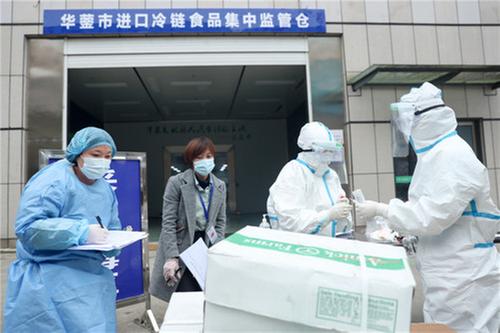 1月15日,隨著廣安華鎣市“冷鏈食品集中監(jiān)管倉”正式投入使用,該市“集中監(jiān)管倉+庫長制”模式日漸完善,冷鏈物流疫情“隔離網”和節(jié)日食品安全“防火墻”也隨之織密織牢。圖為1月29日,在廣安華鎣市冷鏈食品集中監(jiān)管倉,工作人員在對剛剛運回的進口冷鏈食品按流程進行核酸檢測前的消毒、采樣、登記,嚴防疫情境外輸入。