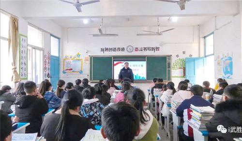 活動當(dāng)天,武勝縣公安局禁毒緝毒大隊民警在城南初中為八年級六班的同學(xué)們上了一堂精彩的禁毒普法專題班會課。班會課圍繞“毒品離你有多近”“青少年怎么遠(yuǎn)離毒品”兩個主題做了禁毒普法教育,通過大量的數(shù)據(jù)和典型案例分析,讓同學(xué)們更深刻地認(rèn)識到毒品的危害性,并進(jìn)一步了解了與禁毒相關(guān)的法律法規(guī)。