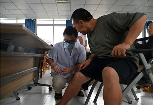 6月18日,在內(nèi)江市東興區(qū)田家鎮(zhèn)同福敬老院,該院老人樂享免費中醫(yī)服務(wù)。