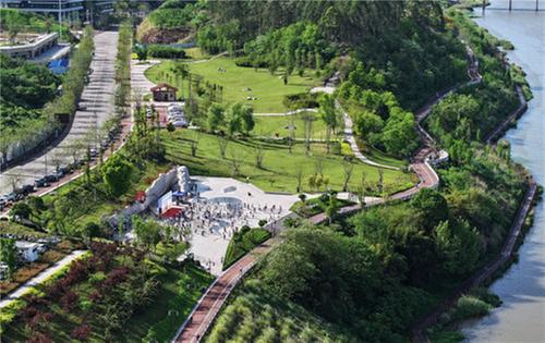 4月19日,內(nèi)江市東興區(qū)花萼濕地公園,選手在公園里一起健走。