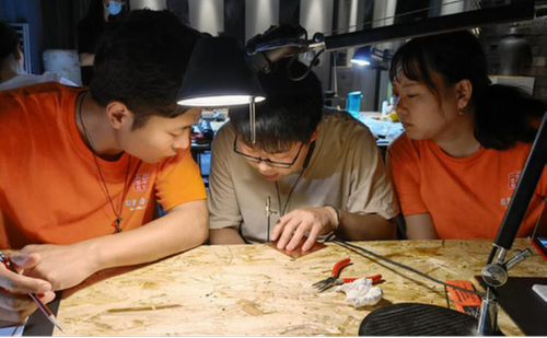 在大力弘揚中華優(yōu)秀傳統(tǒng)文化的時代背景下,如何深度挖掘傳統(tǒng)手工藝的文化內涵,解決其傳承創(chuàng)新難和文創(chuàng)設計人才隊伍薄弱問題,是當下文化、教育、產業(yè)等各界需要共同攻克的難題。項目所依托的藏族金工技藝、成都銀花絲技藝、滎經砂器制作技藝皆為國家級非物質文化遺產,并被列為中國傳統(tǒng)工藝振興目錄。項目的實施,旨將高校藝術創(chuàng)意人才培養(yǎng)優(yōu)勢與文化企事業(yè)單位的市場技術資源優(yōu)勢緊密結合,對傳承和創(chuàng)新人才開展雙向融合培養(yǎng),讓技藝和創(chuàng)意在共同學習中碰撞交融,賦予傳統(tǒng)手工藝新時代內涵和現代表達形式,培養(yǎng)工藝實踐與藝術創(chuàng)新能力兼具的文創(chuàng)設計新型人才,從而實現漢藏金工技藝從傳統(tǒng)資源價值向現代文創(chuàng)產品價值的創(chuàng)造性轉化,助推西部文旅融合發(fā)展和地方鄉(xiāng)村振興,促進城市文創(chuàng)市場的繁榮。