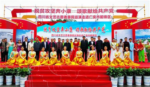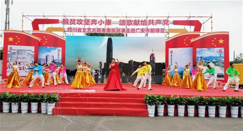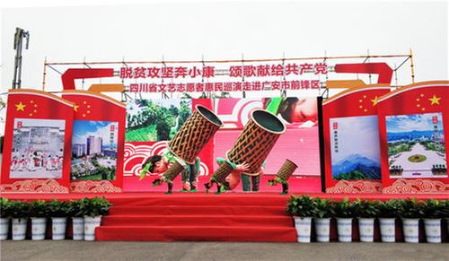“好安逸哦!在家門口都可以看演出,真的是太精彩了。”家住廣安市前鋒區(qū)代市鎮(zhèn)的李女士高興的說。10月12日,由四川省文學(xué)藝術(shù)界聯(lián)合會和中共廣安市委宣傳部主辦,四川省文藝志愿者協(xié)會、廣安市文學(xué)藝術(shù)界聯(lián)合會、中共廣安市前鋒區(qū)委員會、廣安市前鋒區(qū)人民政府承辦的“脫貧攻堅奔小康 頌歌獻(xiàn)給共產(chǎn)黨”——四川省文藝志愿者惠民巡演活動在廣安市前鋒區(qū)代市鎮(zhèn)星城大道上隆重開演。
