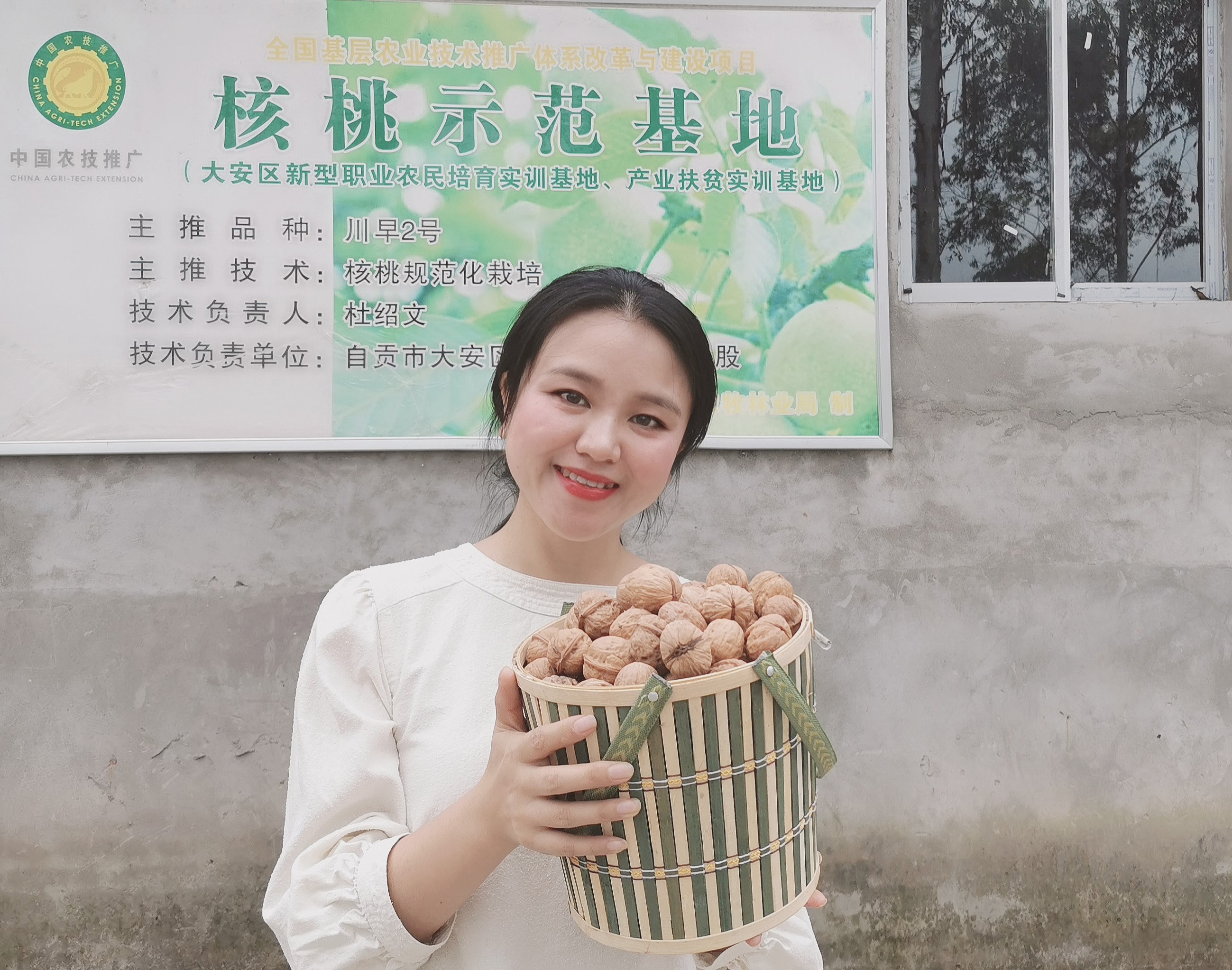 秋天,歲稔年豐,魚肥稻熟果飄香。9月下旬,在自貢市大安區(qū)何市鎮(zhèn),自貢市詠義農(nóng)業(yè)開發(fā)有限公司基地成片的核桃已采摘完畢,曾被壓彎枝頭的核桃樹慢慢地向上伸展,隨風(fēng)搖曳。趁著閑暇,四川省第四屆農(nóng)村鄉(xiāng)土人才創(chuàng)新創(chuàng)業(yè)大賽金獎獲得者、公司副總經(jīng)理劉嫣和村民們圍坐在一起叨嘮著家長里短,又盼望起來年的豐收豐產(chǎn)。話語間,一張張淳樸面容上難掩笑意。
