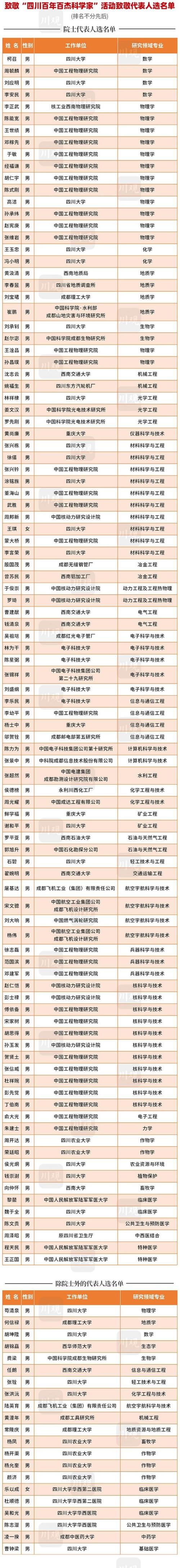 “四川百年百杰科學(xué)家”活動(dòng)致敬代表人選名單