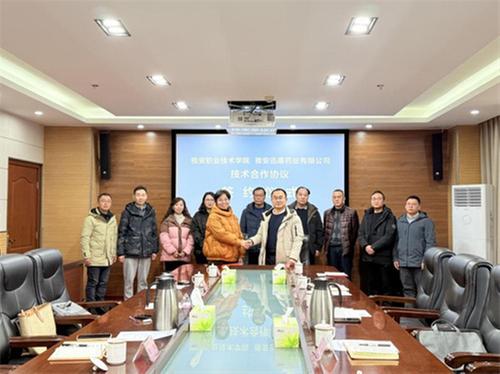 近日,雅安職業(yè)技術學院和雅安迅康藥業(yè)有限公司在雅安職業(yè)技術學院經(jīng)開區(qū)校區(qū)舉行了技術合作協(xié)議簽約儀式。,同時簽約的還有雅職院梁大偉教授基于“一種喹唑啉衍生物及其制備方法和應用”研究成果在中藥開發(fā)中的應用技術服務合同,雅安市科協(xié)主席劉勇、副主席李祥,雅安職業(yè)技術學院副校長彭裕紅及相關區(qū)縣科協(xié)負責人參加活動。