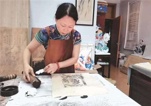 雕刻完成后,再采用中國傳統(tǒng)的拓印技巧,進(jìn)行著色拓印。截至目前,羅智婉已經(jīng)創(chuàng)作完成了20余幅梓潼年畫木刻雕版,讓傳統(tǒng)的梓潼年畫得到了廣泛傳播。