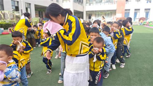 演練前,幼兒園成立專項工作組完善預案,借兒歌、動畫教幼兒自救技能,讓幼兒知道濕毛巾可過濾部分有害煙霧,彎腰低姿能減少煙霧吸入。警報響后,師幼3分鐘撤離至操場。滅火組模擬滅火,安監(jiān)室主任科普滅火器“提、拔、握、壓”用法及滅火原理。