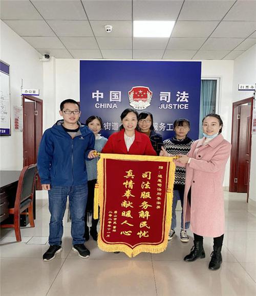 董某夫婦對(duì)此調(diào)解結(jié)果非常滿意,2020年11月10日,他們來(lái)到通惠司法所感謝人民調(diào)解員盡心盡力地處理他們的糾紛,并贈(zèng)送了一面印有“司法服務(wù)解民心、真情奉獻(xiàn)暖人心”的錦旗。調(diào)解員表示,群眾的肯定既是榮譽(yù),更是一種責(zé)任,今后將再接再厲,繼續(xù)為群眾提供優(yōu)質(zhì)、便捷、高效的公共法律服務(wù),樹立良好的司法服務(wù)形象。