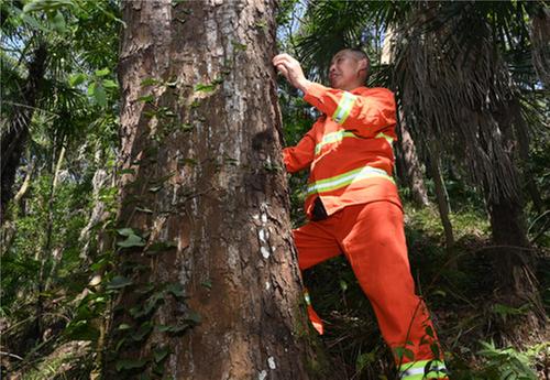 3月28日,夏開桂在查看樹木有無蟲害。