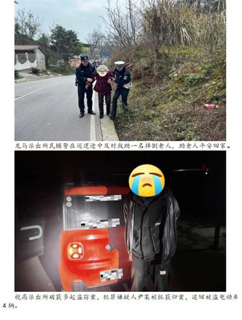為民服務(wù)“不間斷”。龍馬派出所民輔警在巡邏途中及時(shí)救助一名摔倒老人,助老人平安回家。