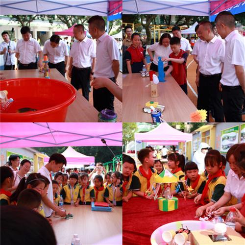 各展示區(qū),小發(fā)明利用常見(jiàn)的“道具”將科學(xué)原理通俗化、形象化展示,吸引大多數(shù)小學(xué)生的目光,學(xué)生們積極參與試驗(yàn),通過(guò)動(dòng)手實(shí)踐和互動(dòng)問(wèn)答感受科學(xué)帶來(lái)的獨(dú)特魅力。手工制作的空間實(shí)驗(yàn)室、天宮二號(hào)、空氣火箭,機(jī)器人表演……為小朋友們帶來(lái)了不一樣的體驗(yàn),同學(xué)們?cè)谝粔K塊展板與科技體驗(yàn)臺(tái)前駐足停留,與科學(xué)家們進(jìn)行了一次跨越時(shí)空的心靈交流。