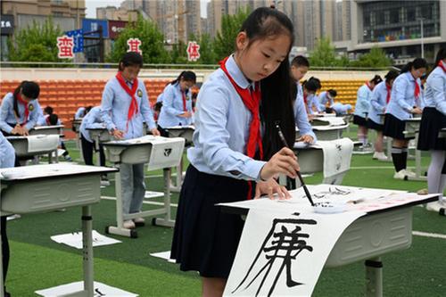 4月17日,在內(nèi)江市東興區(qū)五星小學校,學生正在參加百人書廉活動。