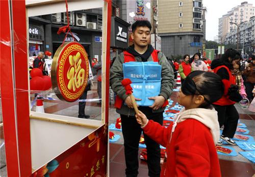 敲響幸福鑼游戲。王超明 攝
