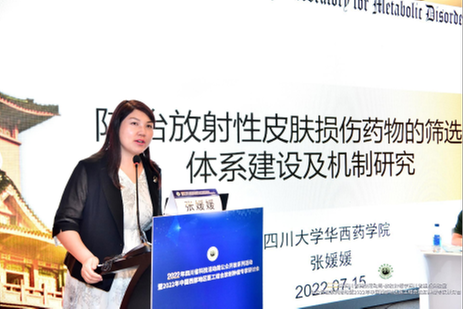 四川大學(xué)華西藥學(xué)院張媛媛教授就防治放射性皮膚損傷藥物的篩選體系建設(shè)及機(jī)制研究進(jìn)行匯報,針對放射治療常見的放射不良反應(yīng)—皮膚損傷展開深入探究,提出增加血流、清楚自由基、促細(xì)胞增殖、抗炎滅菌等系統(tǒng)性的防治思路。同時逐一介紹了基于動物模型、細(xì)胞模型、生化分子模型等構(gòu)建防治放射性皮膚損傷藥物的篩選體系。