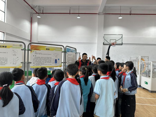 活動(dòng)中,市科技輔導(dǎo)員通過現(xiàn)場(chǎng)教學(xué)為學(xué)生們普及了科技展品的科學(xué)原理,科技輔導(dǎo)員還帶學(xué)生們一起開展互動(dòng)小游戲,增強(qiáng)了學(xué)生們的參與感和體驗(yàn)感,培養(yǎng)了他們用科學(xué)知識(shí)解決問題的意識(shí)。其中一位同學(xué)說,每一個(gè)展品都有著獨(dú)特科學(xué)原理,很神奇,今天的活動(dòng)讓我感受到了科技的力量。