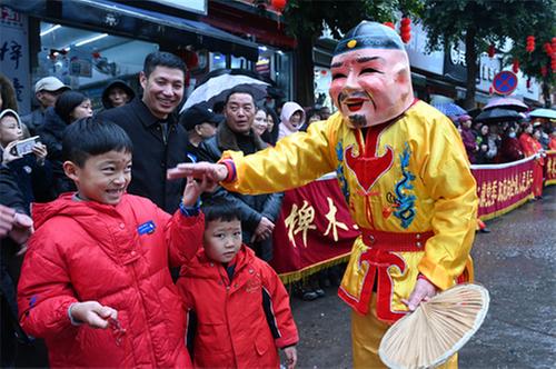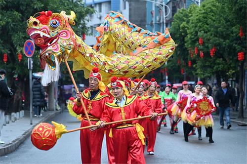 當日是農(nóng)歷正月初九,四川省內(nèi)江市東興區(qū)椑木鎮(zhèn)舉行“民俗踩街鬧新春”巡游活動,民間藝人們身著各色服飾,表演舞龍、舞獅、跑旱船、扭秧歌等豐富多彩的傳統(tǒng)民俗節(jié)目,讓市民近距離感受濃濃年味和傳統(tǒng)文化的魅力。