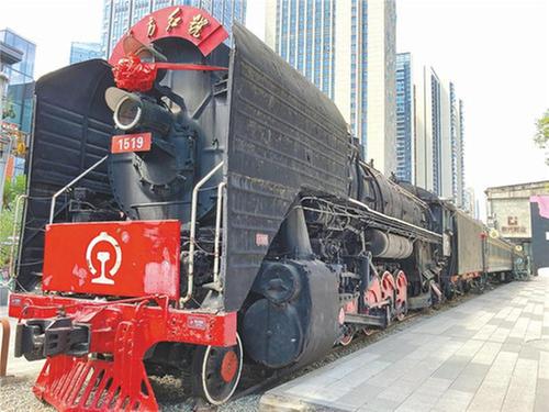 此外,探班員發(fā)現(xiàn),東郊記憶園區(qū)里還分布陳列著車床、沖床、刨床、空氣錘等各式各樣生產(chǎn)機(jī)械,還有標(biāo)號(hào)為“1519”的蒸氣式火車頭及四節(jié)綠皮車廂、原鐵路軌道。在屬于它們的時(shí)代里,都曾為成都的工業(yè)發(fā)展作出了巨大貢獻(xiàn)?,F(xiàn)在,它們“功成身退”,或佇立著、或陳列著,遍布在園區(qū)各個(gè)角落,就像留在歲月長(zhǎng)河中的“時(shí)光機(jī)器”,在這里靜靜訴說著一代人的工業(yè)強(qiáng)國夢(mèng)想和情懷。