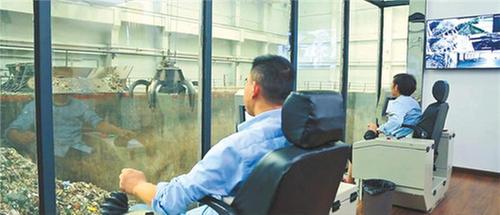 第二站,探班員來(lái)到了垃圾吊控制室,巨大的垃圾倉(cāng)蔚為壯觀。透過(guò)玻璃窗,近萬(wàn)噸垃圾堆得像山一樣高。只見兩名工作人員操縱著巨型垃圾吊,穩(wěn)穩(wěn)地移動(dòng)著手柄,如抓娃娃游戲機(jī)一樣,一次抓起10噸重的垃圾,投向850℃以上的焚燒爐進(jìn)行燃燒。最終產(chǎn)生過(guò)熱蒸汽進(jìn)入汽輪機(jī)內(nèi)做功,轉(zhuǎn)換為電能,照亮尋常百姓家。