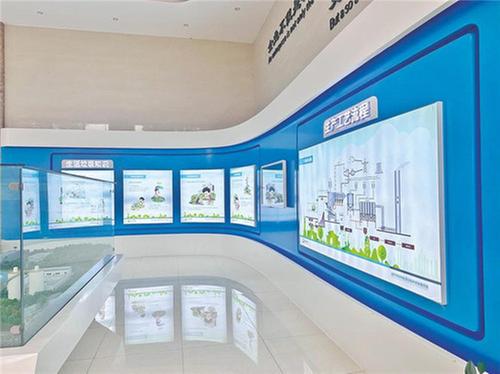在講解員的帶領(lǐng)下,探班員第一站來(lái)到了環(huán)??破照箯d。這里科技感十足,全景沙盤、三維視頻、360度全息投影儀等科普設(shè)備,讓探班員直觀地了解到垃圾實(shí)現(xiàn)無(wú)害化、資源化、減量化處理的全過(guò)程。“垃圾焚燒發(fā)電已成為處理生活垃圾的主要方式之一,對(duì)環(huán)境保護(hù)和節(jié)能減排有著重要作用。過(guò)程中,垃圾焚燒產(chǎn)生的熱能通過(guò)余熱鍋爐產(chǎn)生高溫過(guò)熱蒸汽,高溫過(guò)熱蒸汽推動(dòng)汽輪發(fā)電機(jī)組發(fā)電,產(chǎn)生的清潔電能直接并入電網(wǎng)。”對(duì)著工藝流程圖,講解員詳細(xì)介紹了垃圾焚燒發(fā)電變廢為寶的原理,“焚燒產(chǎn)生的煙氣采用國(guó)際領(lǐng)先的凈化工藝,各項(xiàng)排放指標(biāo)均優(yōu)于歐盟2000標(biāo)準(zhǔn)(歐盟2000指EU2000/76/EC標(biāo)準(zhǔn),是歐盟在2000年通過(guò)的關(guān)于垃圾焚燒的相關(guān)規(guī)定,是目前世界上較先進(jìn)的垃圾處理標(biāo)準(zhǔn));滲濾液經(jīng)過(guò)處理后全量回用,全廠實(shí)現(xiàn)污水零排放;飛灰經(jīng)過(guò)螯合劑穩(wěn)定化并檢測(cè)達(dá)標(biāo)后安全填埋;爐渣可制成環(huán)保磚,再次回歸于城市建設(shè)之中。”