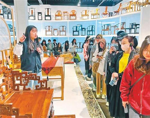為更好地保護(hù)和傳承非遺技藝,提高廣大學(xué)生對(duì)傳統(tǒng)木作文化的興趣和審美,萬(wàn)木留香博物館專門打造了匠心傳承體驗(yàn)區(qū),學(xué)生可在此體驗(yàn)傳統(tǒng)榫卯結(jié)構(gòu)富貴凳拼接、斗拱工藝、手工筷子制作、拓印年畫(huà)、魯班鎖等傳統(tǒng)木作工藝。目前已接待中小學(xué)生研學(xué)超1萬(wàn)人。
