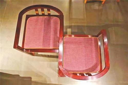 仔細(xì)端詳這套鴛鴦椅,探班員發(fā)現(xiàn),其采用了中心對(duì)稱的結(jié)構(gòu)形式,既有柔和的曲線,又有剛正的直線,展現(xiàn)出中國(guó)人剛?cè)岵?jì)的處世哲學(xué)。“這些看似簡(jiǎn)單的設(shè)計(jì),背后都蘊(yùn)含著深刻的意義。”講解員如是說(shuō)。