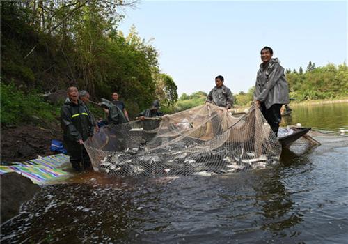 4月13日,內(nèi)江市東興區(qū)松林水庫,內(nèi)江市禾興水務(wù)投資有限責任公司組織漁民捕撈生態(tài)魚。