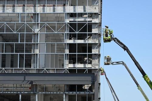 5月16日,在位于內(nèi)江市東興經(jīng)開區(qū)的四川晶華膠粘新材料西南生產(chǎn)基地項目建設(shè)現(xiàn)場,建設(shè)者正在進行生產(chǎn)車間外立墻面施工。