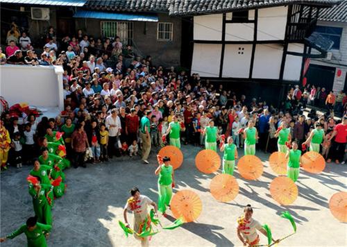 “老街幾十年都沒這樣熱鬧過了……。”人群里一個(gè)中年女士一邊看演出一邊感嘆,臉上寫滿了喜悅。