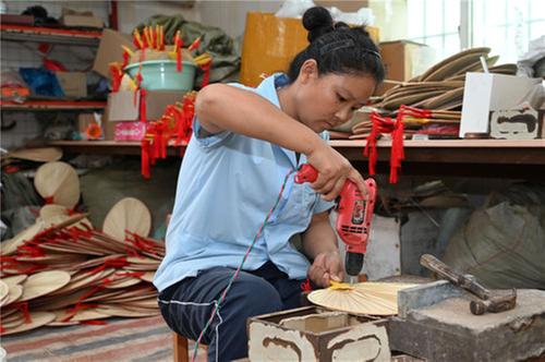 近年來,金銀嘴村采取“黨支部+合作社+基地+農(nóng)戶”的模式,因地制宜發(fā)展蒲葵種植和蒲扇加工業(yè),目前年加工生產(chǎn)蒲扇500余萬把,產(chǎn)品遠(yuǎn)銷廣東、福建等地,成為當(dāng)?shù)赜忻?ldquo;蒲扇村”。 夏至?xí)r節(jié),金銀嘴村家揚蒲葵種植專業(yè)合作社一派繁忙景象,村民正忙著加工制作蒲扇,保障市場訂單供應(yīng)。
