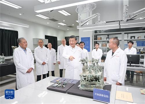 7月25日至27日,中共中央總書記、國(guó)家主席、中央軍委主席習(xí)近平在四川考察。這是26日下午,習(xí)近平在位于德陽(yáng)市廣漢市的三星堆博物館文物保護(hù)與修復(fù)館,同現(xiàn)場(chǎng)工作人員親切交流。新華社記者 謝環(huán)馳 攝