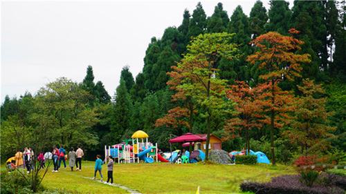 游客在玉屏山景區(qū)露營、賞彩林