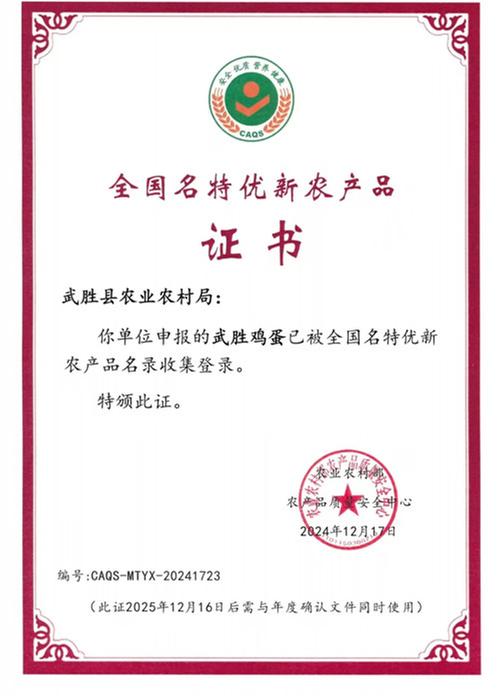 據(jù)悉,2024年12月底,武勝豬肉、武勝雞蛋成功入選2024年第三批全國名特優(yōu)新農(nóng)產(chǎn)品名錄,這是首次進入名錄的武勝特色農(nóng)產(chǎn)品,填補了武勝在這個品牌名錄上的空白。同時,武勝豬肉和武勝雞蛋獲得了全國范圍內(nèi)的權(quán)威認可,實現(xiàn)了從“地方農(nóng)產(chǎn)品”蛻變?yōu)?ldquo;國字號”名特優(yōu)新農(nóng)產(chǎn)品。