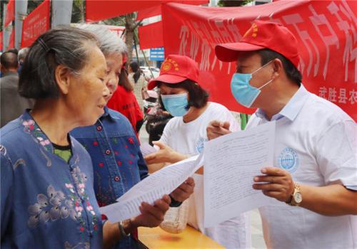 活動中,武勝縣緊緊圍繞“決勝全面小康 踐行科技為民”這一主題,各聯(lián)合行動單位走上街頭,貼近群眾設置宣傳點。各單位采取懸掛橫幅、擺放宣傳展板,各宣傳點的科技志愿者們還通過科普咨詢、發(fā)放宣傳資料、贈送環(huán)保袋和環(huán)保圍裙等生活物品的方式,積極向群眾普及科學飲食、環(huán)境保護、節(jié)水知識、反邪教等各類科普知識。