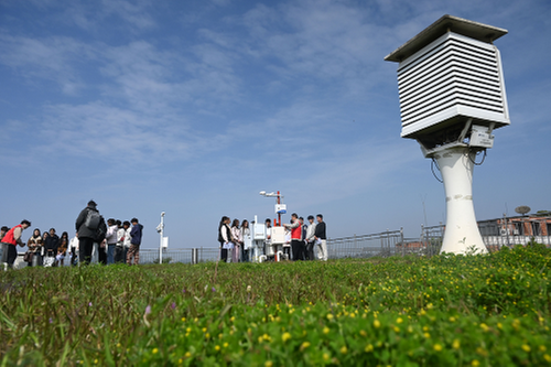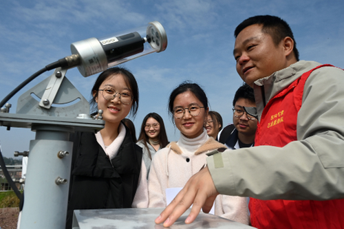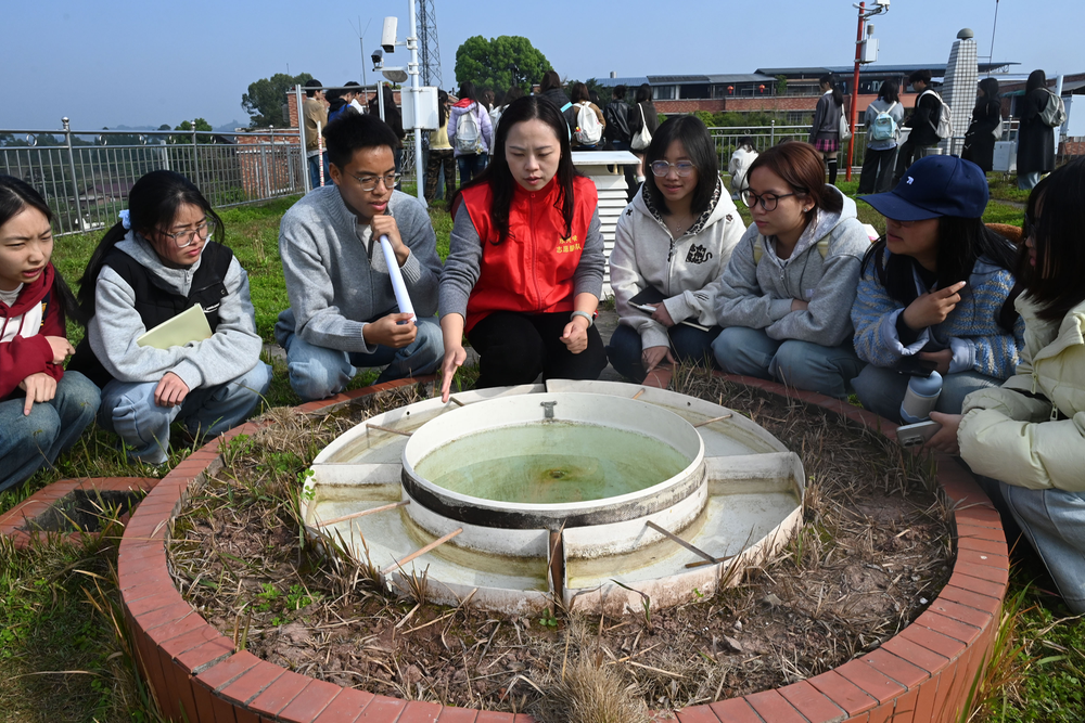 3月21日,在內(nèi)江市東興區(qū)氣象觀測站,氣象科普志愿者正在向內(nèi)江師范學(xué)院的大學(xué)生講解氣象科普知識。