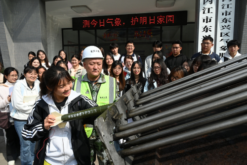 當(dāng)日,內(nèi)江市東興區(qū)氣象局開展氣象開放日活動,邀請內(nèi)江師范學(xué)院的大學(xué)生走進東興區(qū)氣象觀測站,近距離觀看氣象設(shè)備,學(xué)習(xí)氣象知識,了解氣象觀測和天氣預(yù)報的奧秘。
