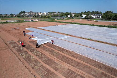 2025年3月24日,在四川省內(nèi)江市東興區(qū)長江現(xiàn)代農(nóng)業(yè)園區(qū),村民們正在進(jìn)行水稻集中育秧。