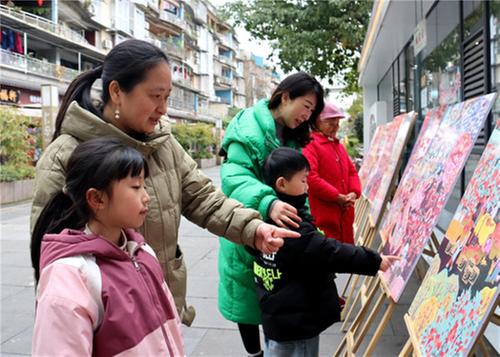 2024年2月24日,群眾在納溪安富街道竹光里特色街區(qū)欣賞書法、美術(shù)、攝影展。肖光榮 攝