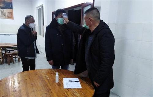 蘇長華為敬老院老人測量體溫,講解疫情防控知識