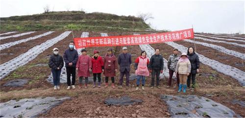 在基地現(xiàn)場(chǎng),工人們熟練地操作著,先把薄膜撕開一個(gè)小洞,再用鐵鍬刨坑,放入貢菊幼苗后,迅速培土覆蓋,動(dòng)作一氣呵成。緊接著,澆灌工人及時(shí)對(duì)栽種好的貢菊進(jìn)行灌溉作業(yè),確保幼苗能在充足的水分滋養(yǎng)下茁壯成長(zhǎng)。此時(shí),內(nèi)江市農(nóng)業(yè)科學(xué)院的專家也來(lái)到現(xiàn)場(chǎng)為工人們提供專業(yè)的技術(shù)指導(dǎo),從種植間距到培土深度,專家事無(wú)巨細(xì)地答疑解惑,保障貢菊的種植質(zhì)量。