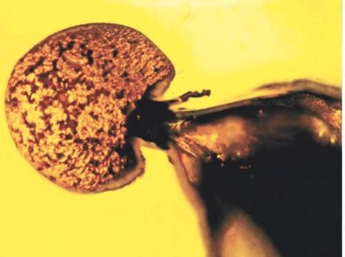院子里的潮濕陰暗處會(huì)長(zhǎng)出蘑菇,然而你能想象螞蟻身上也會(huì)長(zhǎng)出蘑菇嗎?據(jù)《真菌生物學(xué)》雜志近日?qǐng)?bào)道,美國(guó)俄勒岡州立大學(xué)研究人員在一只保存在琥珀中的螞蟻身上,發(fā)現(xiàn)了一種新型子囊菌。該琥珀來(lái)自5000萬(wàn)年前的歐洲波羅的海地區(qū),從螞蟻身上長(zhǎng)出來(lái)的新蘑菇樣本,是已知最古老的寄生螞蟻的真菌,也代表了一個(gè)新的真菌屬和物種。研究人員將這種新真菌命名為波羅根霉(Allocordyceps Baltica)。