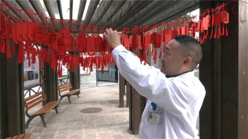 春節(jié)期間的醫(yī)院里,雖然沒有春節(jié)的歡聲笑語,但依舊閃爍著溫暖的燈光。邱建強和其他醫(yī)務(wù)人員一起守護著患者,在工作崗位上堅守中度過了農(nóng)歷新年。在醫(yī)院特別布置的心愿牌上,邱建強寫下了最樸實的新年祝福:“過年多喝水,多鍛煉,健康生活。愿大家幸福無憂。”