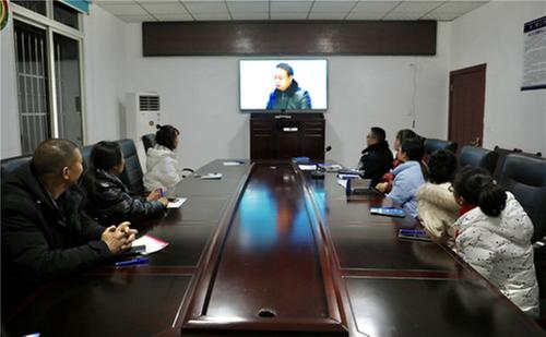 村民們通過“遠(yuǎn)程動(dòng)態(tài)視頻調(diào)解系統(tǒng)”觀看直播