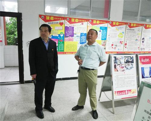 9月16日上午,廣安市前鋒區(qū)虎城鎮(zhèn)學校校長謝大斌、安辦主任屈紅梅一行到代市初級中學校,對該校的禁毒宣傳教育陣地進行考察學習。代市初中張瑞坤校長、安辦主任田青柱陪同觀摩。