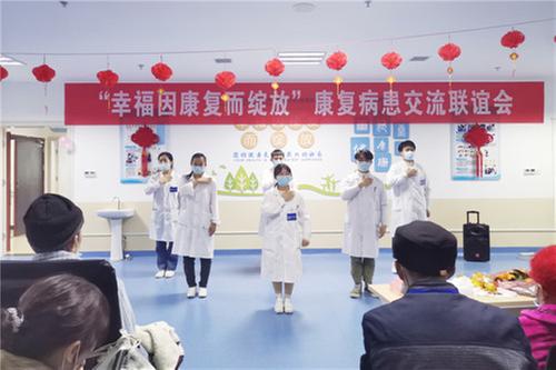 聯(lián)誼會上,該院康復醫(yī)護團隊和實習同學還表演了他們自編自導的文藝節(jié)目,患者家屬也參與到節(jié)目表演的環(huán)節(jié),一起為患者康復加油鼓勁。此外,患者及其家屬與醫(yī)務人員一起包餃子、吃餃子,互祝平安吉祥。通過活動拉近了醫(yī)護人員與患者及家屬的距離,增強了患者戰(zhàn)勝疾病的信心和主動康復的意識。