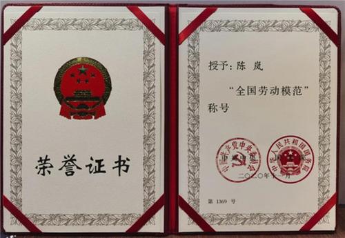 全國(guó)勞動(dòng)模范榮譽(yù)證書